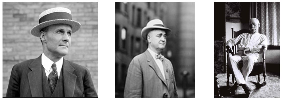 “Tex” Rickard (left), Bat Masterson (center) and Wyatt Earp (right)
