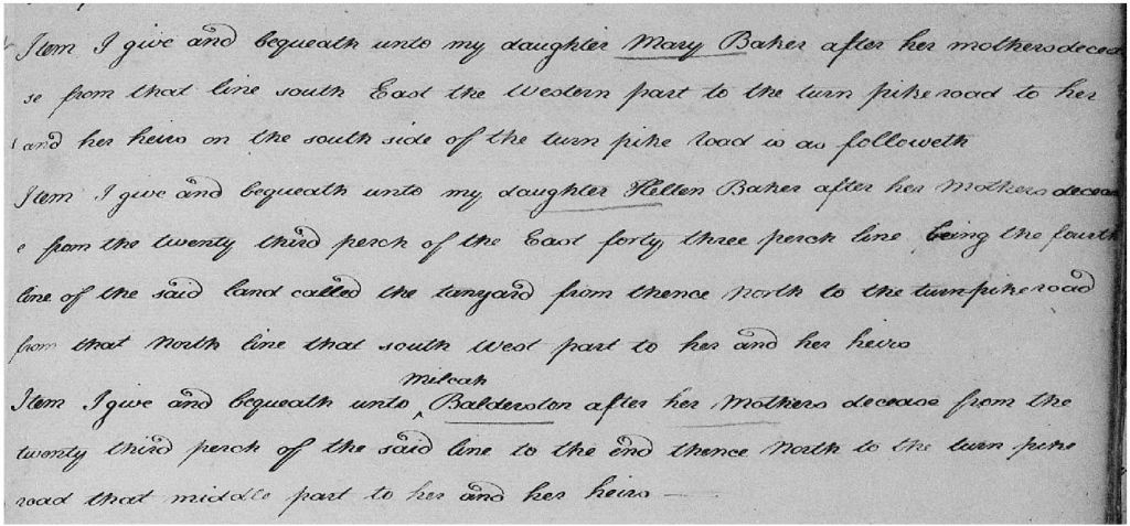 Daughters Mary Baker, Hellen Baker and Milcah Balderston: