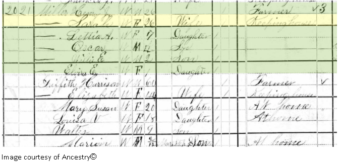 Sometime between 1870 and 1880, Sarah marries Henry Jackson Miller.