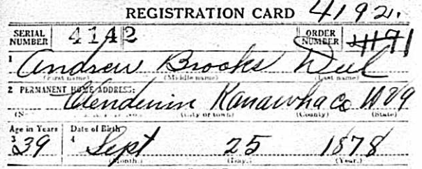 The next record we find for Andrew is the World War I Draft Registration for 1917-1918:
