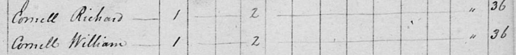 As I went through ahead in time, I discovered Richard and William Cornell pretty regularly in the tax lists, and at first, it seemed kind of odd to have gaps of time where they are not present in the tax list for a particular year, but as with any type of listing of population, there can be a myriad of reasons why they are not in the list.