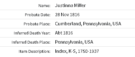 Courtesy of Ancestry©-Pennsylvania, U.S., Wills and Probate Records, 1683-1993 – Index, K-S, 1750-1937