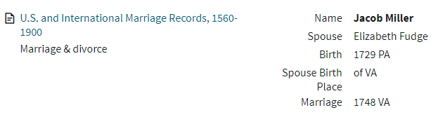 My next search was for a marriage record for John Miller. Again, no luck…I did find a marriage record for John’s brother, Jacob: