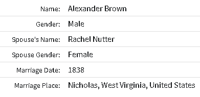 Alexander Brown II, son of Alexander Brown and Mary Polly Foster married Rachel Nutter: