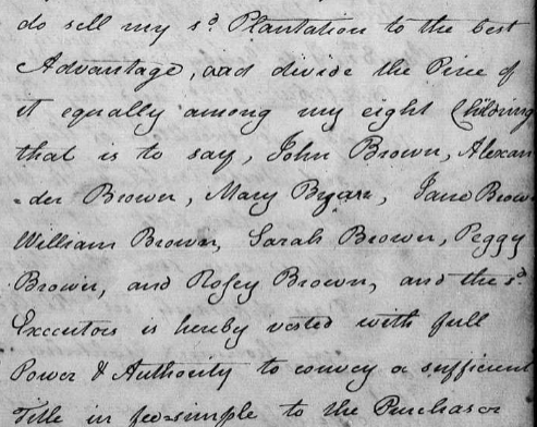 Here are the three of eight children as notated in the will of William Brown, dated 28th day of March, 1806, Monroe County, Virginia: