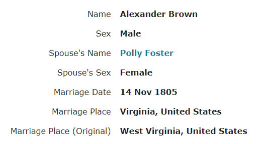 Alexander Brown and Mary Polly Foster: