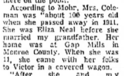 This associated paragraph from the same article relates to John Coleman’s wife, Eliza Jane (Neal) Coleman: