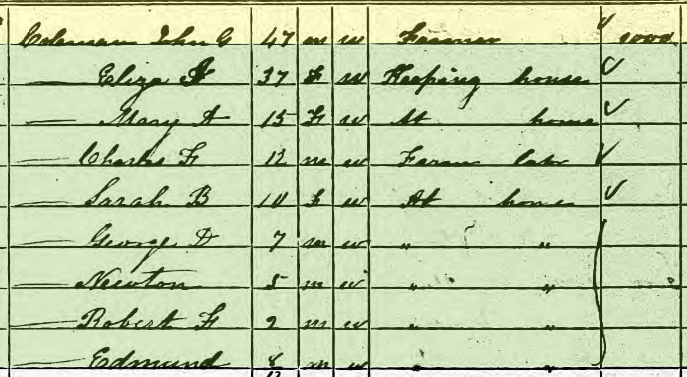 Now, let’s go back in time to the censuses because I did not find a death certificate for John D. Coleman. We’ll start with the 1860 Census for Fayette Co., VA since I couldn’t find him in the 1850 Census: