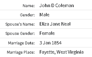 Here is the marriage record for John D. Coleman and Eliza Jane Neal: