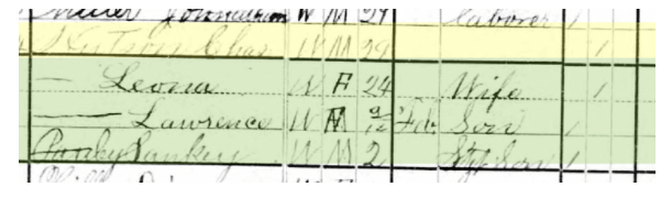 This is the same census I showed in my previous post that shows Leona Hudson’s child Sankey Pauley from her 1st marriage to Daniel Pauley.