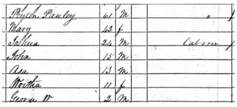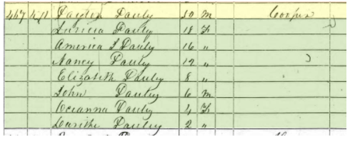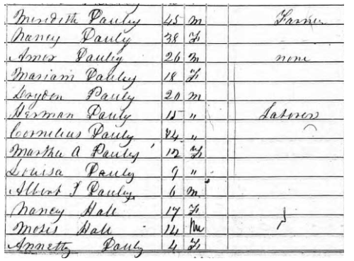 At this point, I’d wanted to continue to research this line of the Pauley family through Peyton Pauley, so I continued researching the records for Peyton after the 1850 census.