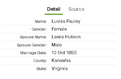The above 1850 census was taken 14 Aug 1850…almost 2 months later on 10 Oct 1850, Lavicia Pauley married Lewis Hudson in Kanawha Co., VA: