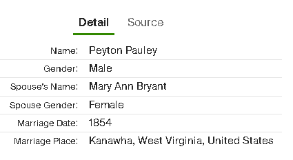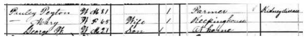 It looks as though Peyton was suffering from Kidney Disease based on the last column shown above. Based on what I have seen in family trees and other locations on the internet, Peyton died in 1880. My next steps were to try and figure out who were the parents of Peyton Pauley.