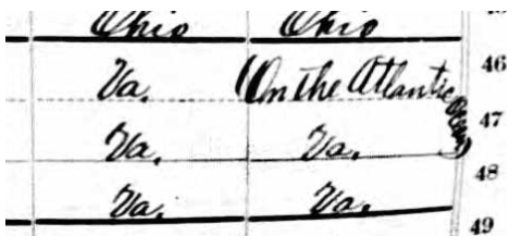 Now, there are many types of records where we need to step back and be careful not to take too much stock in the information that is being given because there are times the informant for said records may not fully know everything about what is being asked of them. I will tell you that for as long as I have been doing this kind of research, I have only seen 1 or 2 other censuses where it actually states someone being born on an ocean. It has been my experience that this is a rare statement to make on censuses.