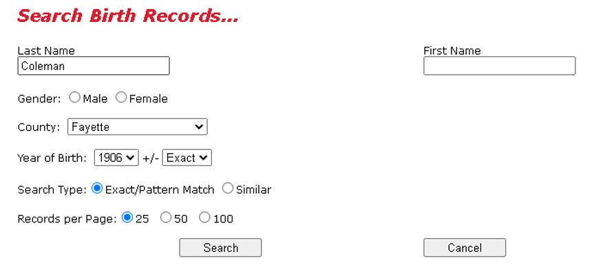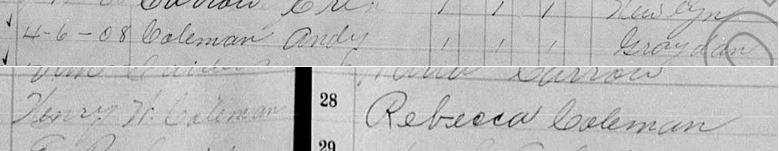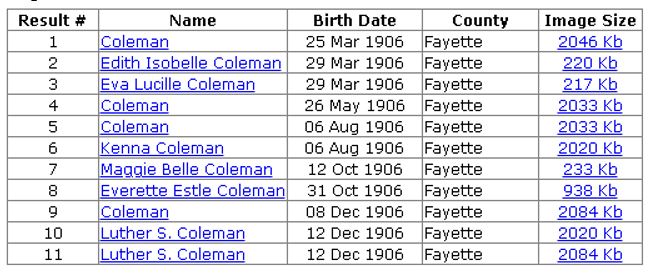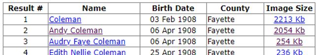 I did a search for any Colemans born between 1906 & 1910 in Fayette County, since I knew Eva and Edith were born in 1906 and in the 1910 Census, they only had a younger sister named Audrey who was 1-1/2 yrs. old and born about 1908. Obviously, something had happened to Eva’s baby brother. Was it possible that baby brother and Audry were twins? Here is what I found out.