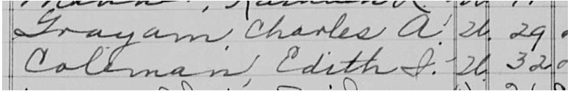 Notice the ages of Charles Grayam and Edith Coleman. Edith was 38 years old, so I wondered what the actual age of Charles Grayam was.