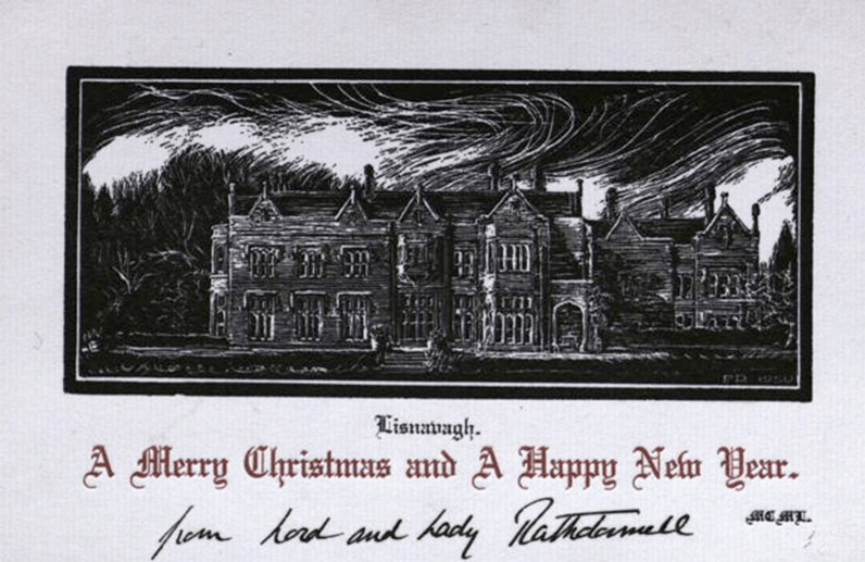 With that thought in mind, I was curious about Christmas time at the ancestral home of the McClintock family in County Carlow, at the Lisnavagh House, home of the Baron Rathdonnell.