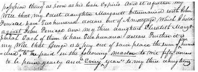 “…it is my further will that my oldest daughter Margaret intermarried with John Fenical…”