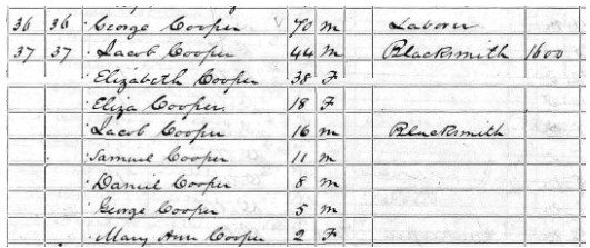 If we look at the 1850 Census in Lancaster Co., PA in West Earl Twp., we find Jacob, Elizabeth and family, including George and Samuel-note an older George Cooper living next door:
