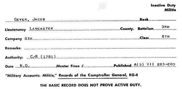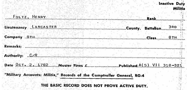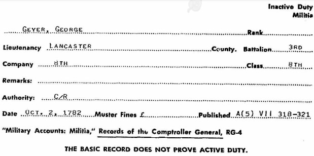 The following is from the Pennsylvania Archive showing Henry Foltz, George Geyer and Jacob Geyer for the 3rd Battalion, 8th Company of the Lancaster Co., PA Militia – 1781: