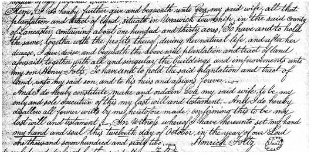 One of the most important records is the will of Johann Heinrich Foltz (1715-1762), father of Henry Foltz and husband of Maria Eva Blum: