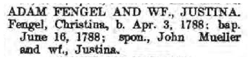 Interesting fact, Justina and John Adam Fenical had a daughter in 1788 and guess what they named her?
