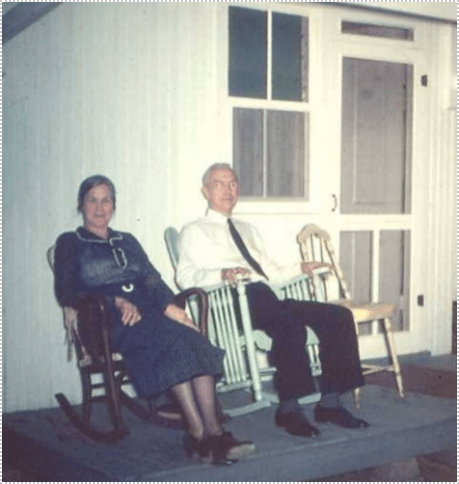 Here is a photograph of my great-grandparents, William and Edna Mae Earp sitting on the front porch of their cottage at Cleona Camp Meeting.